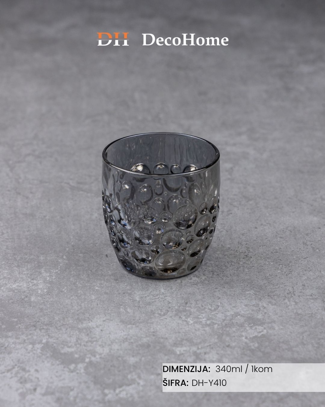 Staklena čaša siva 340ml/ 1kom DH-Y410