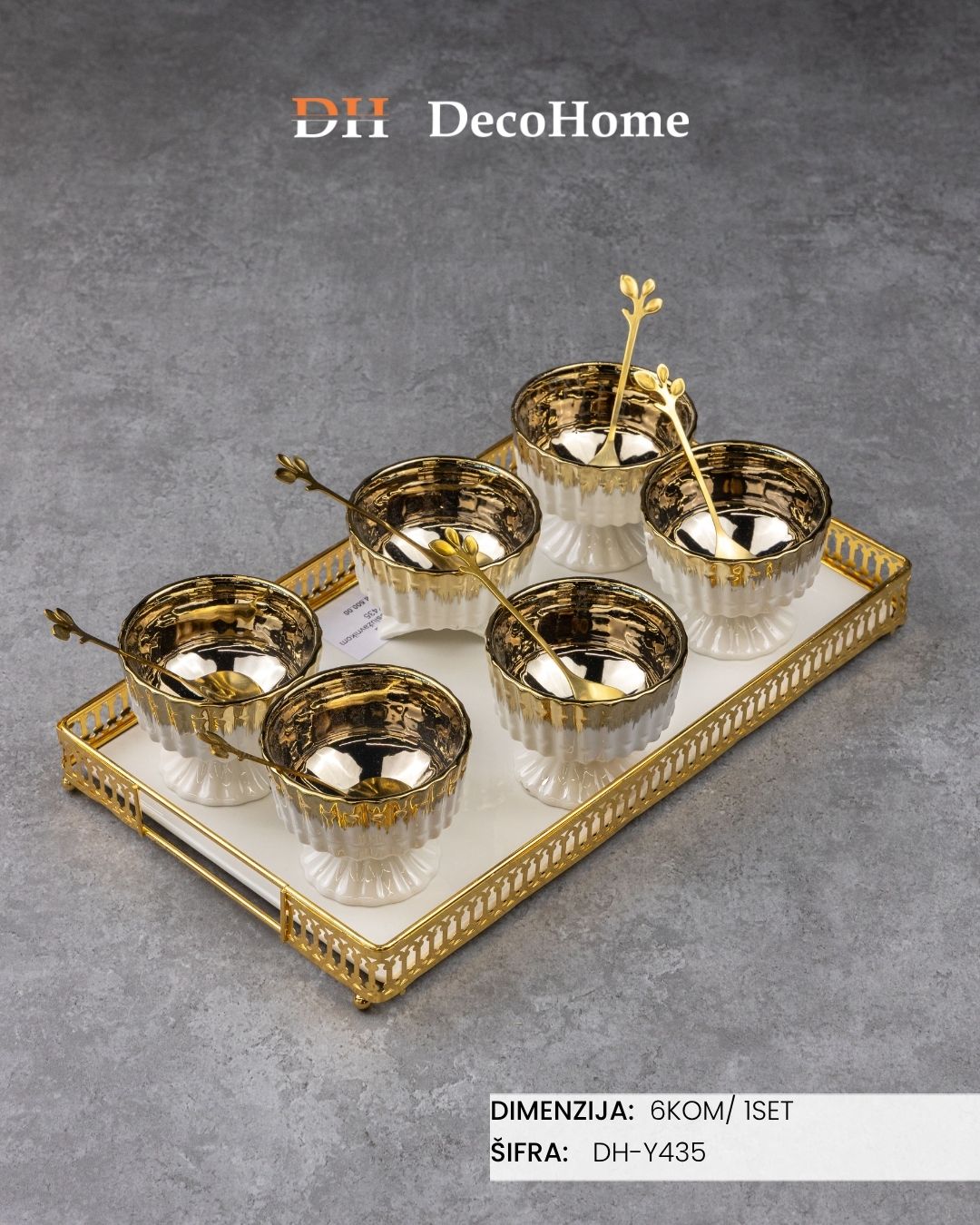 Keramičke činije sa kašičicama i poslužavnikom / 6kom - DH-Y435