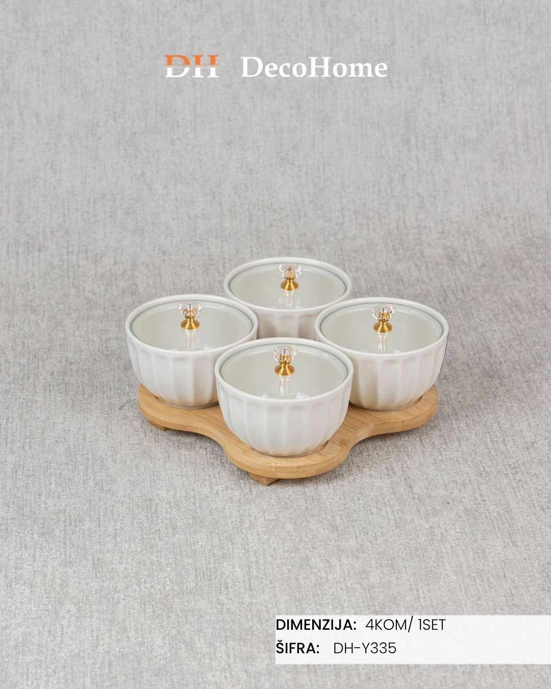 Keramičke posude sa staklenim poklopcem i drvenim postoljem / 4kom DH-Y335