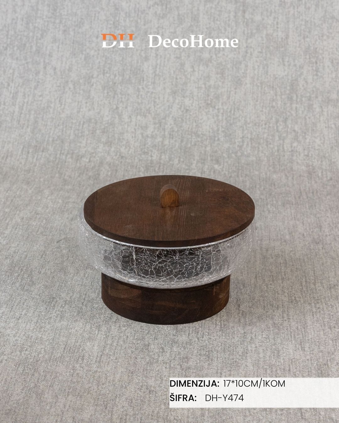 Staklena činija sa drvenim postoljem 17*10cm/ 1kom - DH-Y474