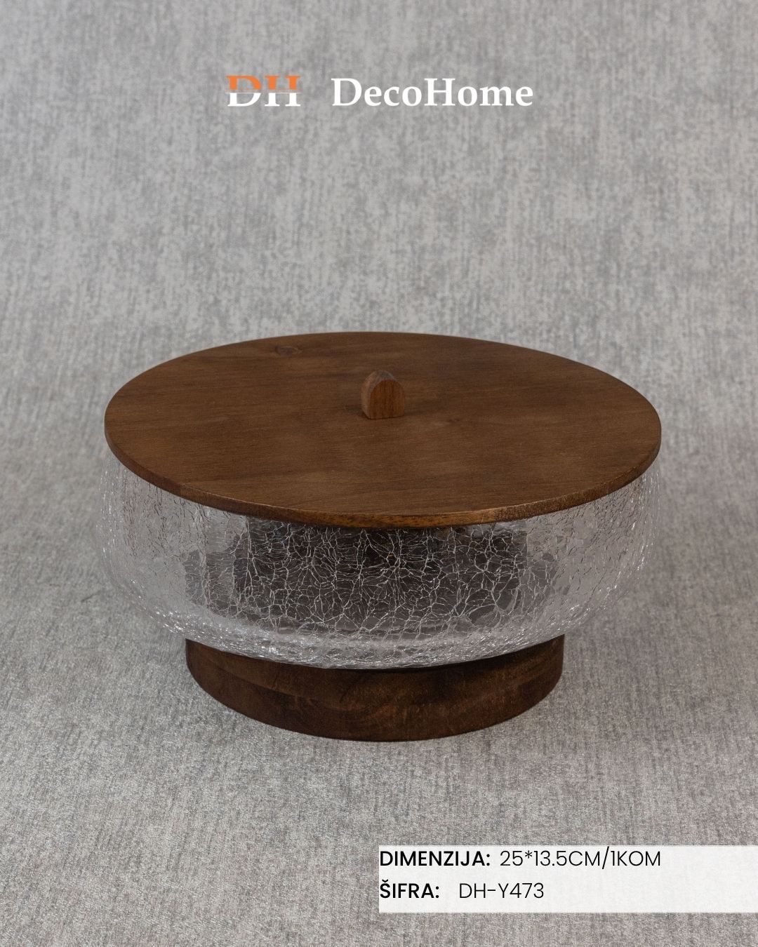 Staklena činija sa drvenim postoljem 25*13.5cm / 1kom - DH-Y473