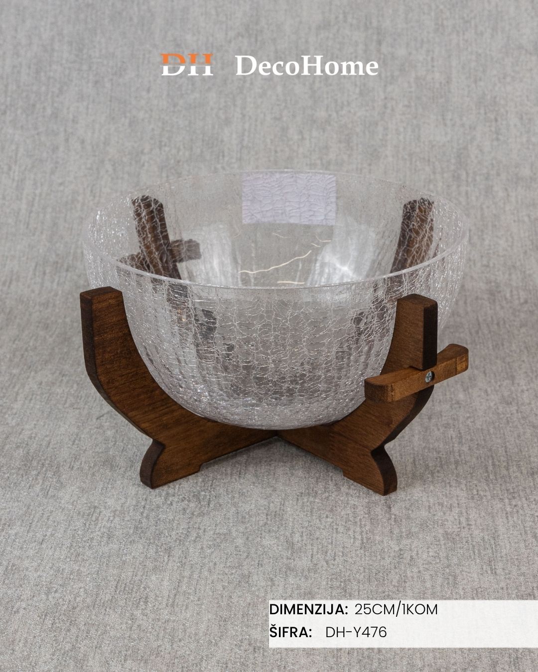 Staklena činija sa drvenim postoljem 25cm / 1kom - DH-Y476
