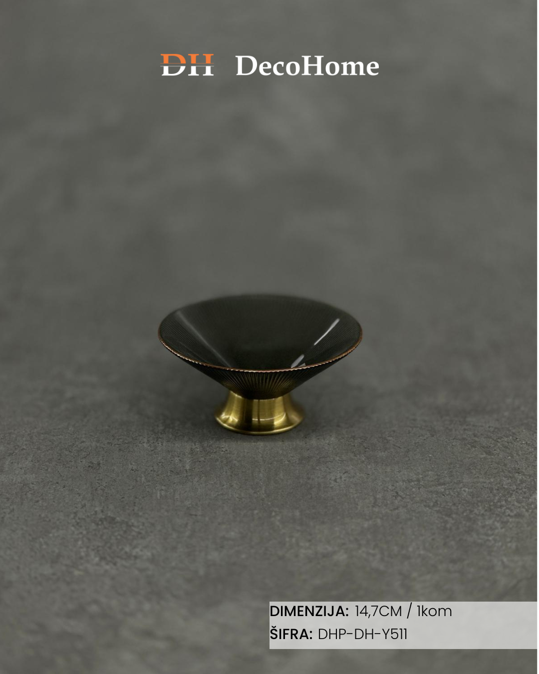 Staklena crna činija sa zlatnim postoljem 14,7cm / 1kom - DH-Y511
