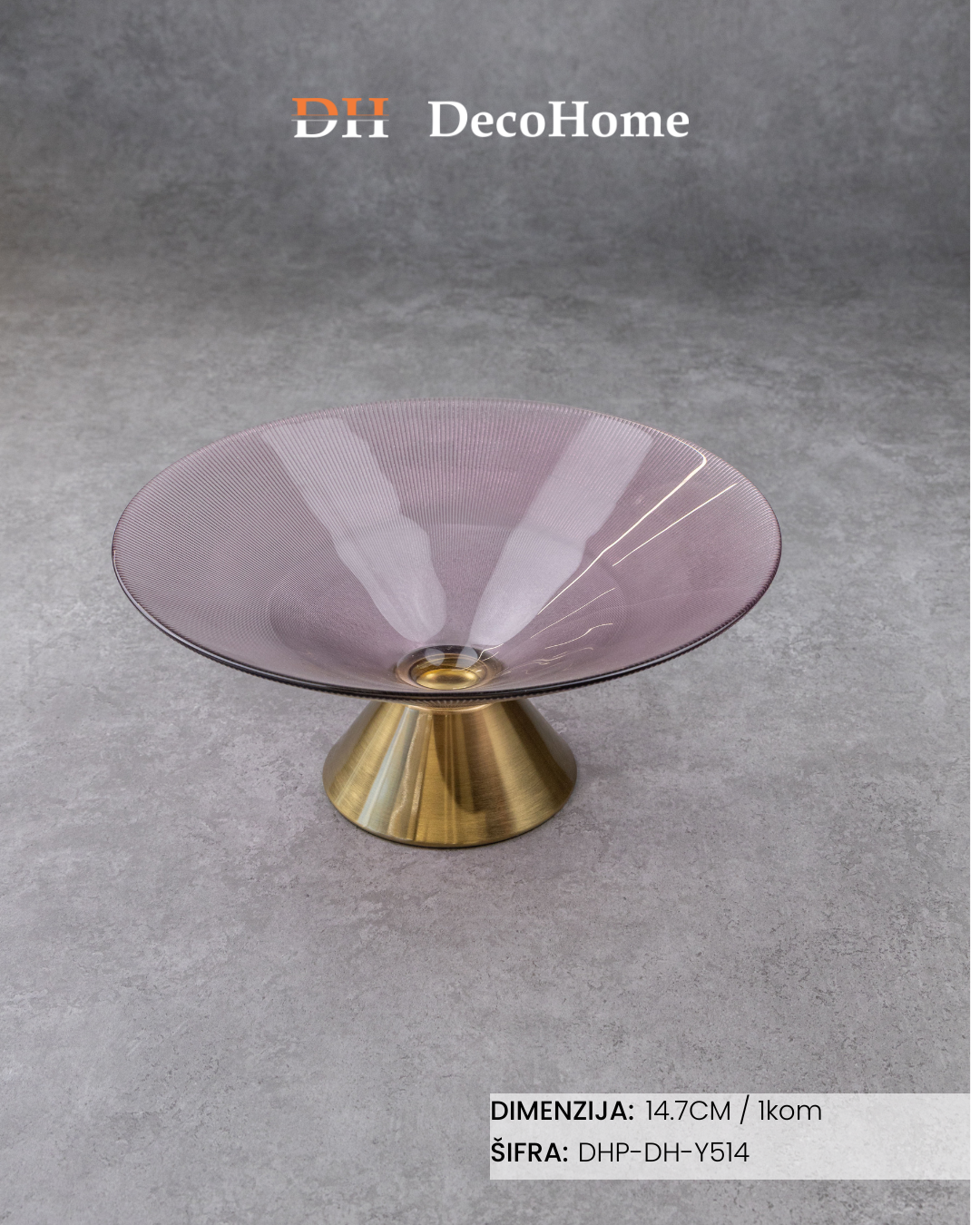 Staklena lila činija sa zlatnim postoljem 14,7cm / 1kom - DH-Y514