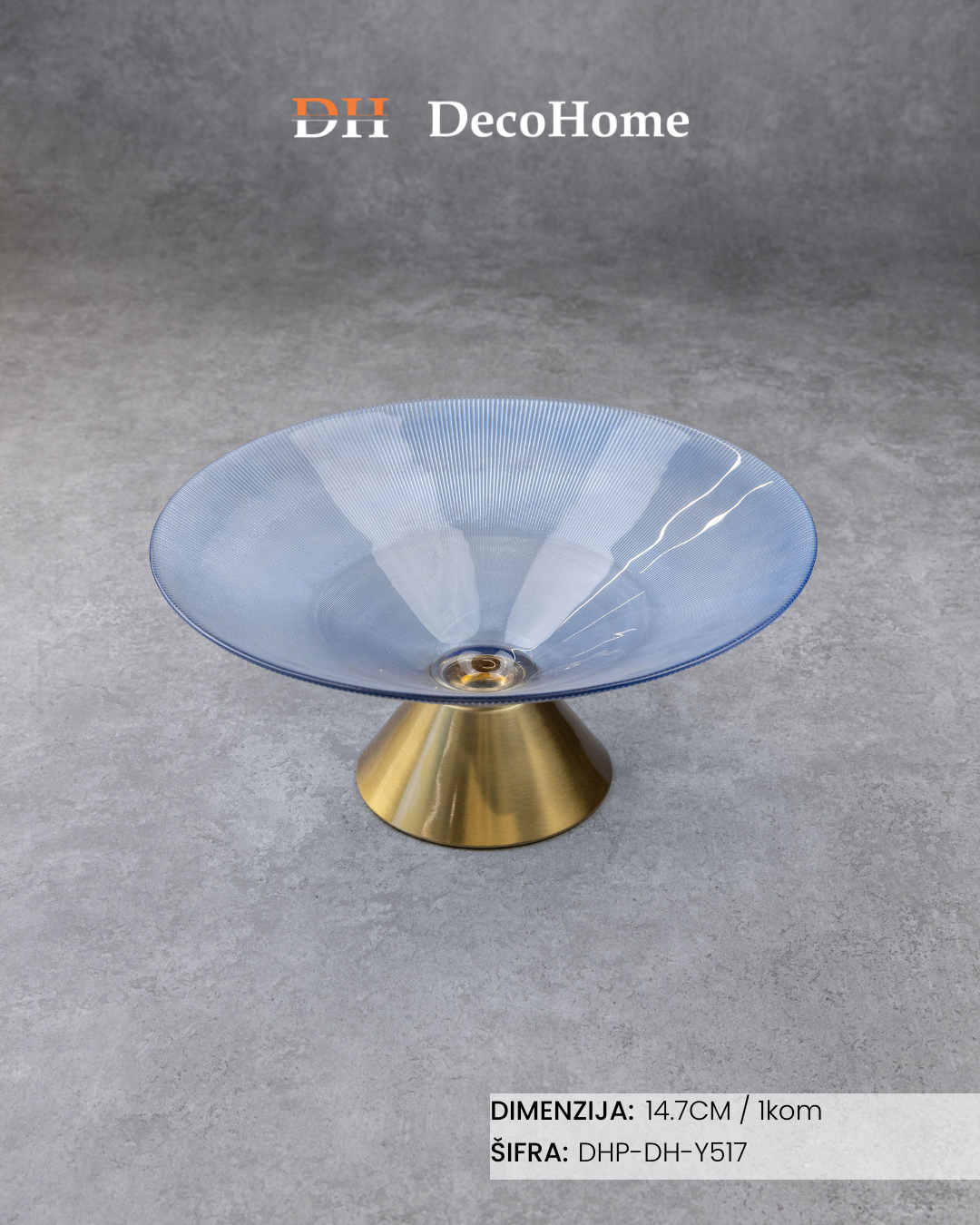 Staklena plava činija sa zlatnim postoljem 14,7cm / 1kom - DH-Y517