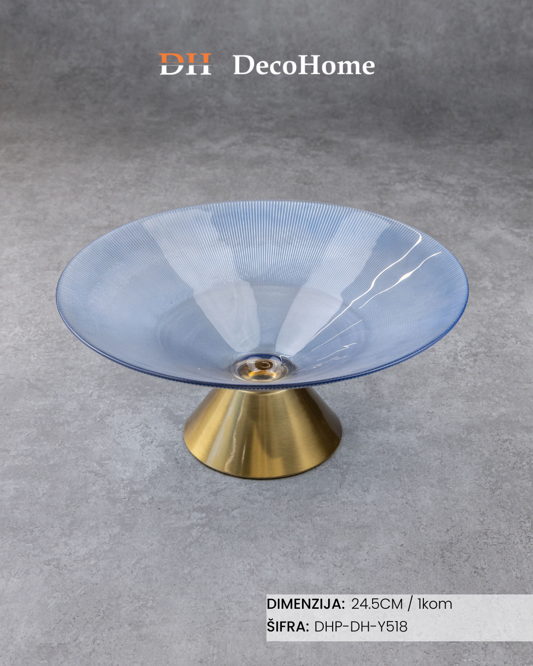 Staklena plava činija sa zlatnim postoljem 24,5cm / 1kom - DH-Y518