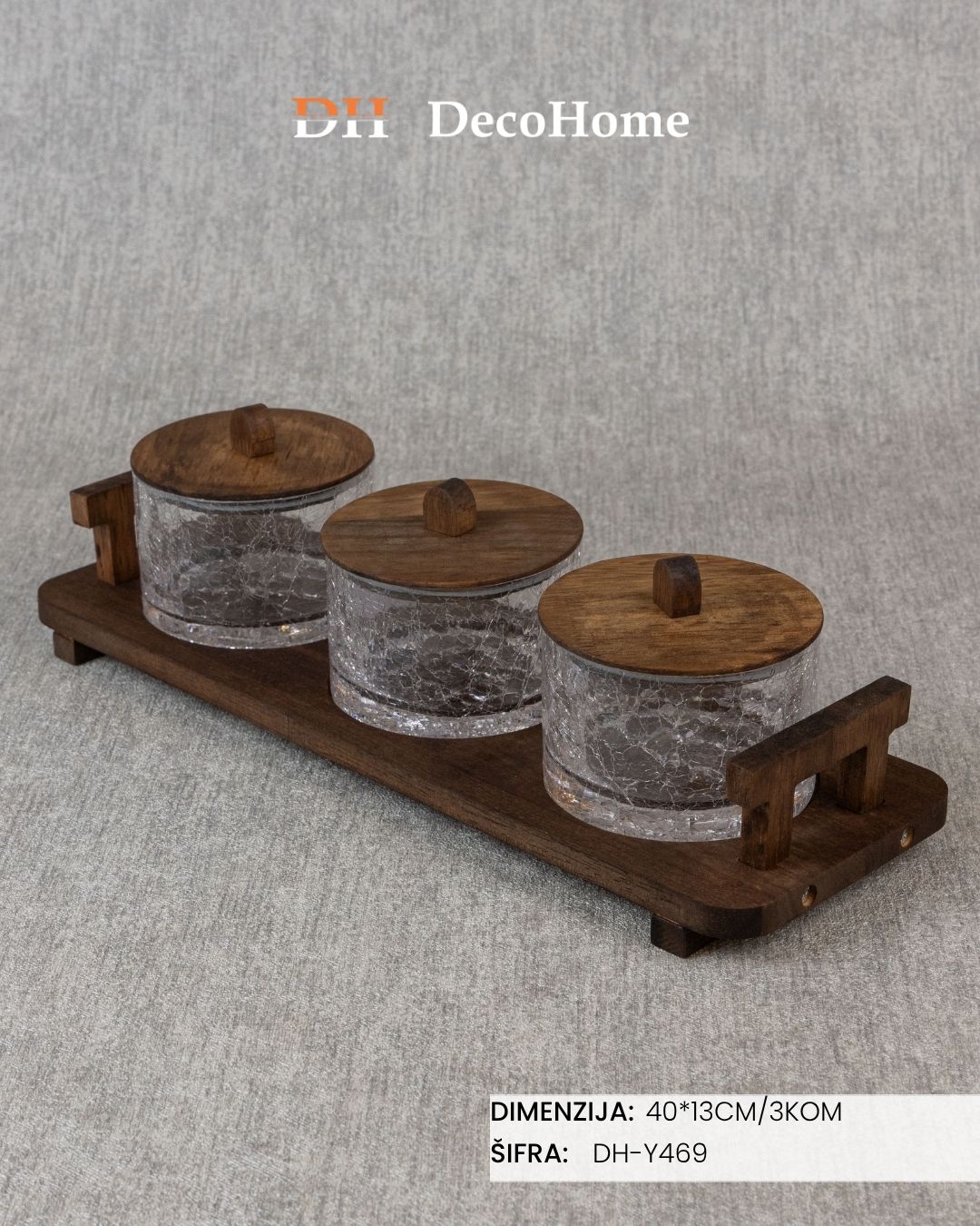 Staklene činije na drvenom stalku 40*13cm / 3+1kom - DH-Y469