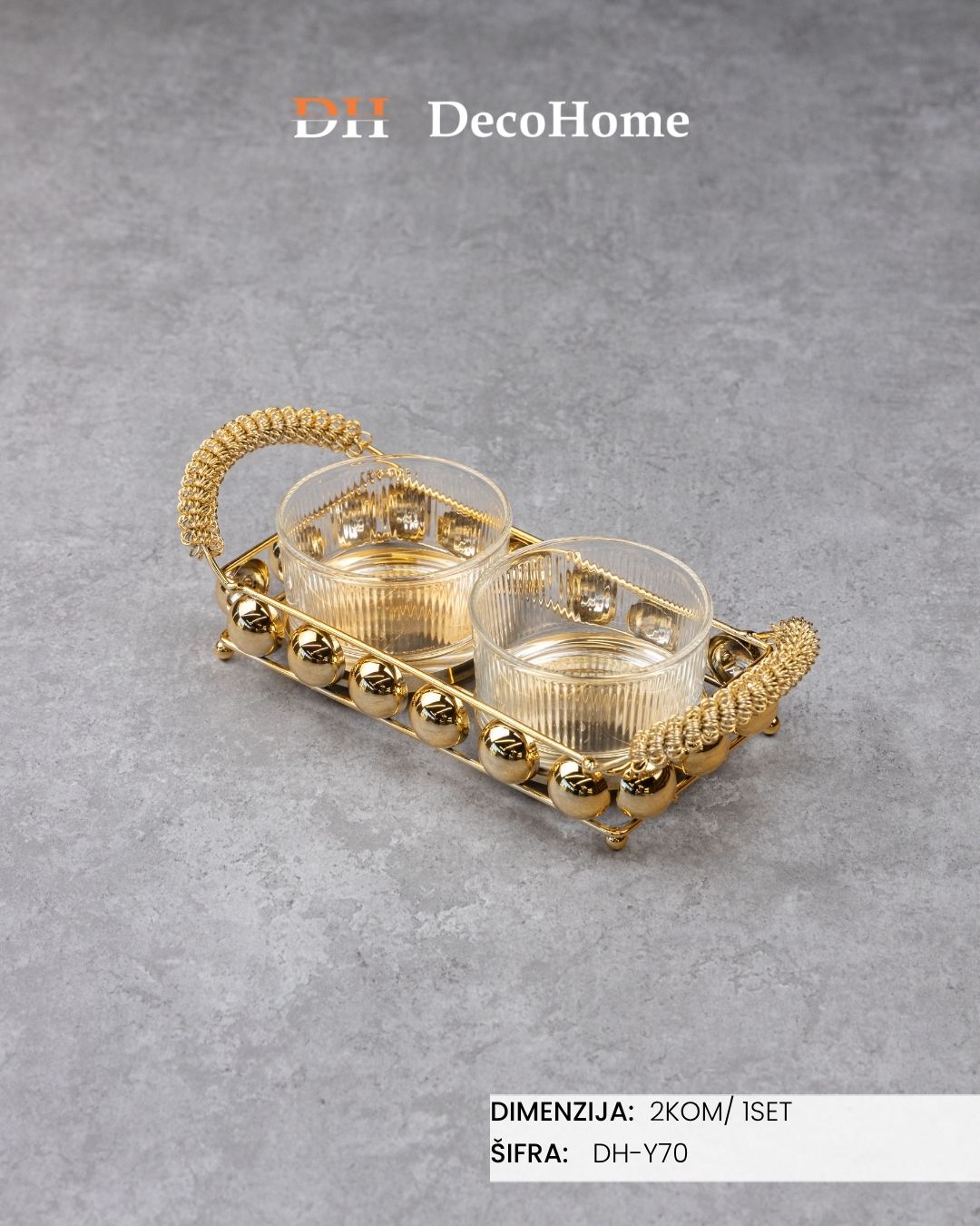 Staklene činije sa metalnim postoljem 27*12*4cm / 2kom - DH-Y70