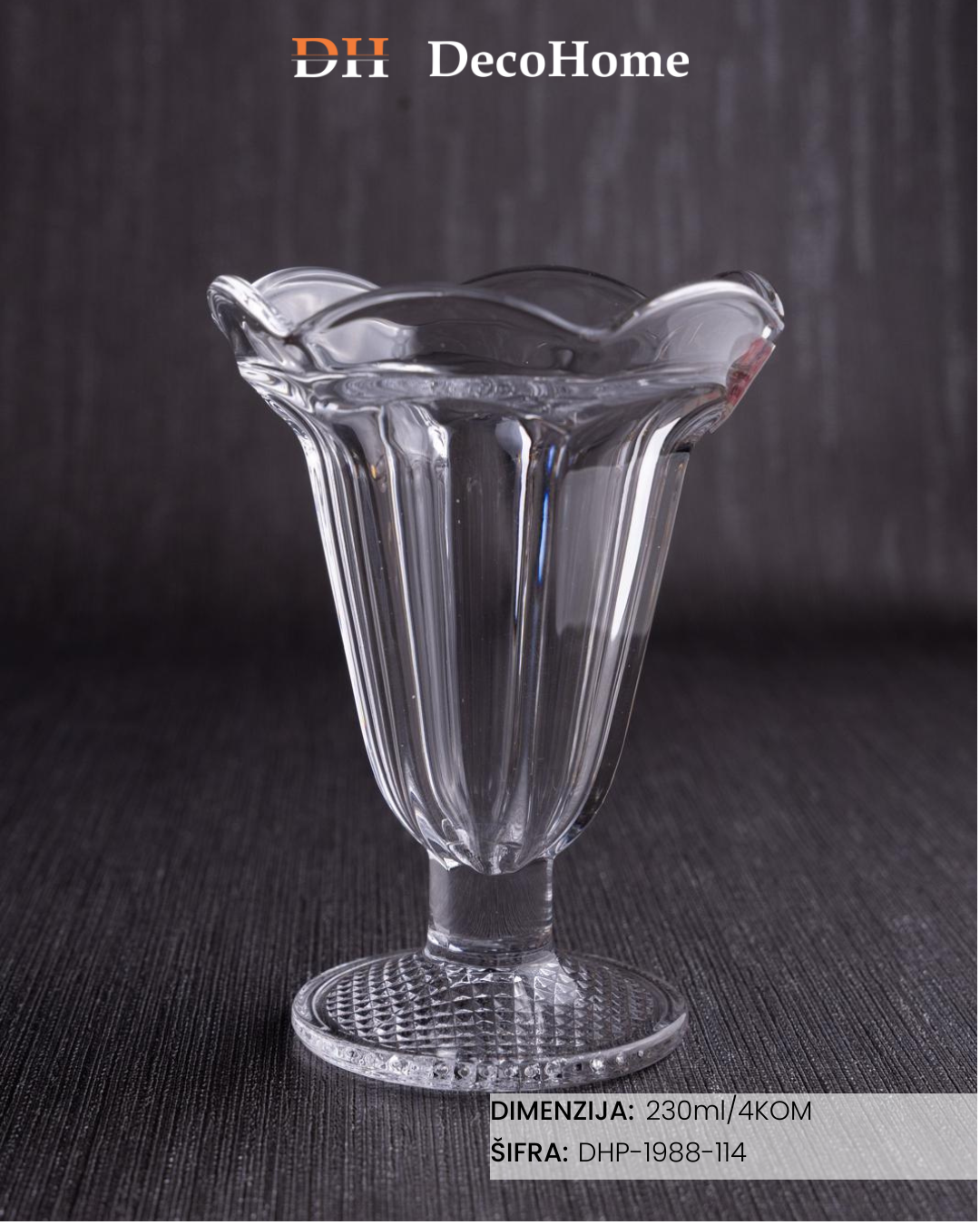 Staklene činije za sladoled 230ml / 4kom - DHP-1988-114