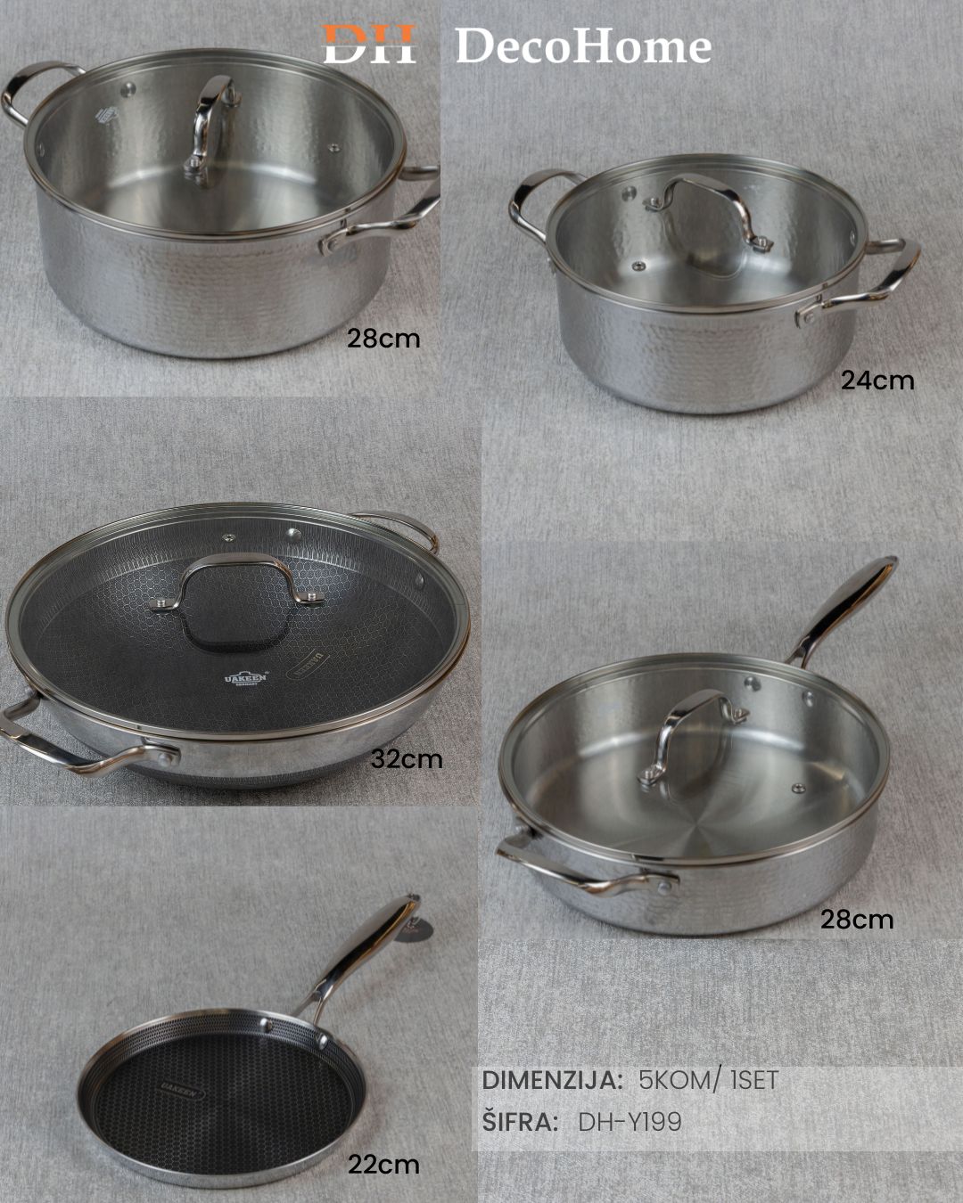 Metalni set šerpe i tiganji sa poklopcima Inox / 5kom - DH-Y199