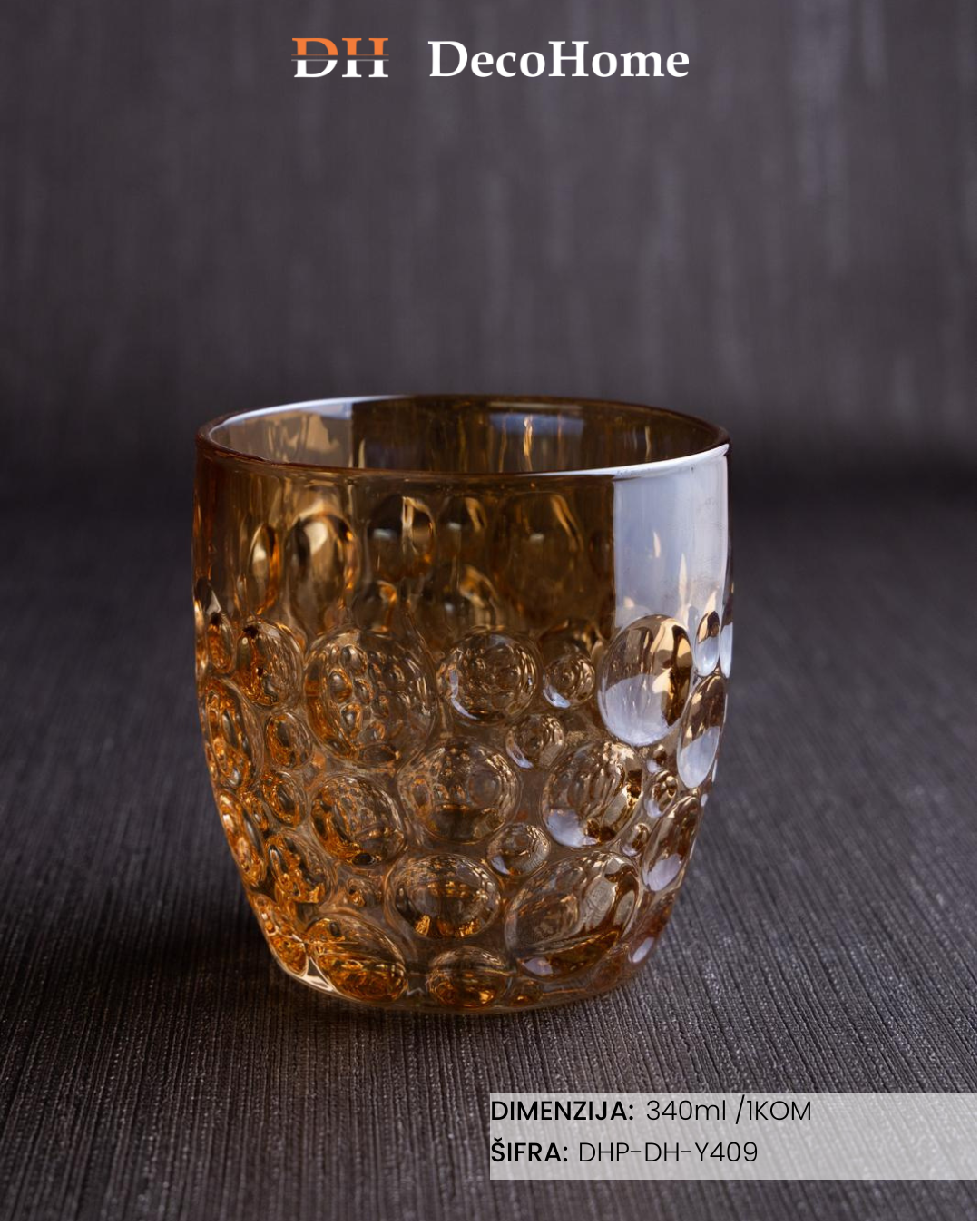 Staklena čaša zlatna 340ml/ 1kom DH-Y409
