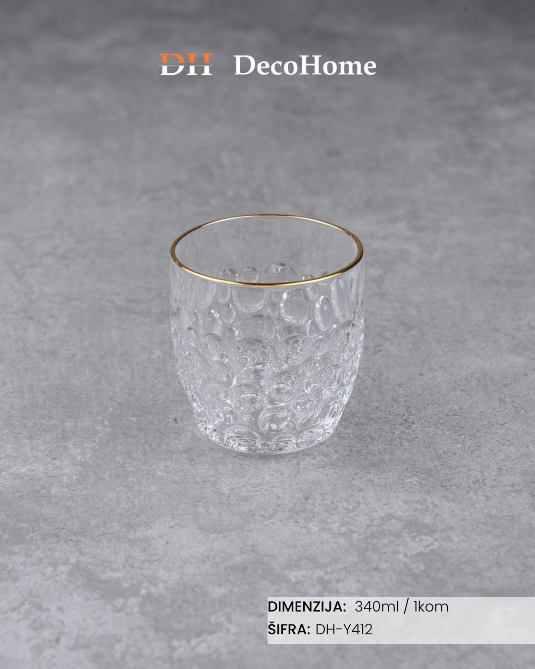 Staklena čaša zlatna ivica 340ml/ 1kom DH-Y412