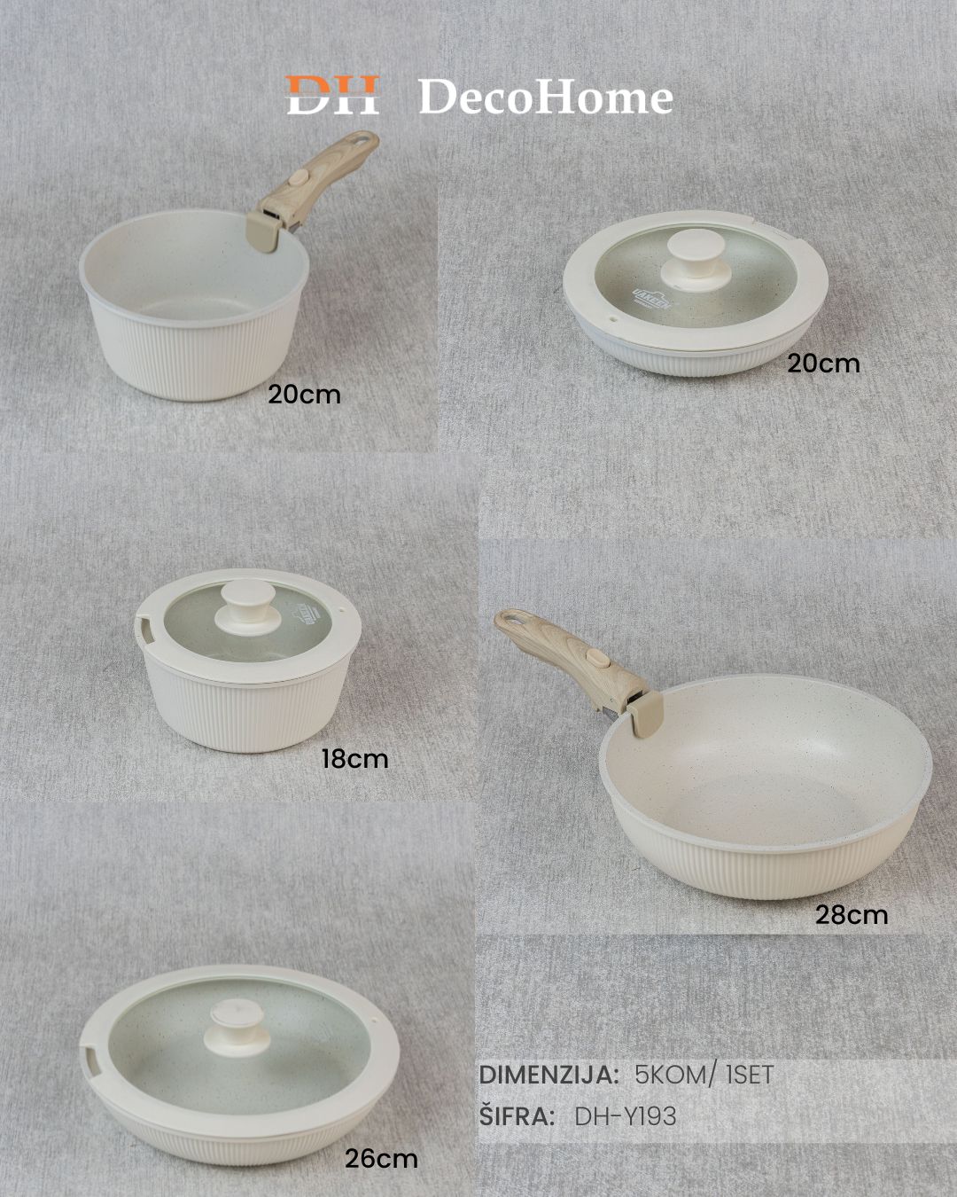 Naš premium set šerpi i tiganja izrađen je od visokokvalitetnih materijala koji obezbeđuju ravnomerno sprovođenje toplote i vrhunske rezultate pripreme hrane. Set kombinuje praktičnost, izdržljivost i moderan dizajn, pružajući sve što je potrebno za svakodnevno i profesionalno kuvanje. Otporan na habanje, jednostavan za održavanje i prilagođen svim tipovima šporeta, ovaj set predstavlja dugoročno i pouzdano rešenje za svaku kuhinju.
