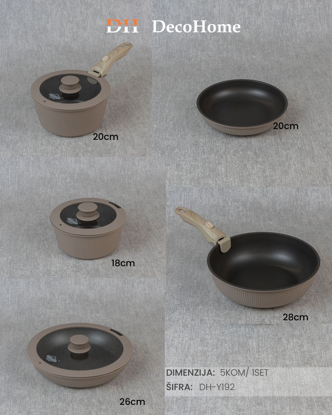 Naš premium set šerpi i tiganja izrađen je od visokokvalitetnih materijala koji obezbeđuju ravnomerno sprovođenje toplote i vrhunske rezultate pripreme hrane. Set kombinuje praktičnost, izdržljivost i moderan dizajn, pružajući sve što je potrebno za svakodnevno i profesionalno kuvanje. Otporan na habanje, jednostavan za održavanje i prilagođen svim tipovima šporeta, ovaj set predstavlja dugoročno i pouzdano rešenje za svaku kuhinju.