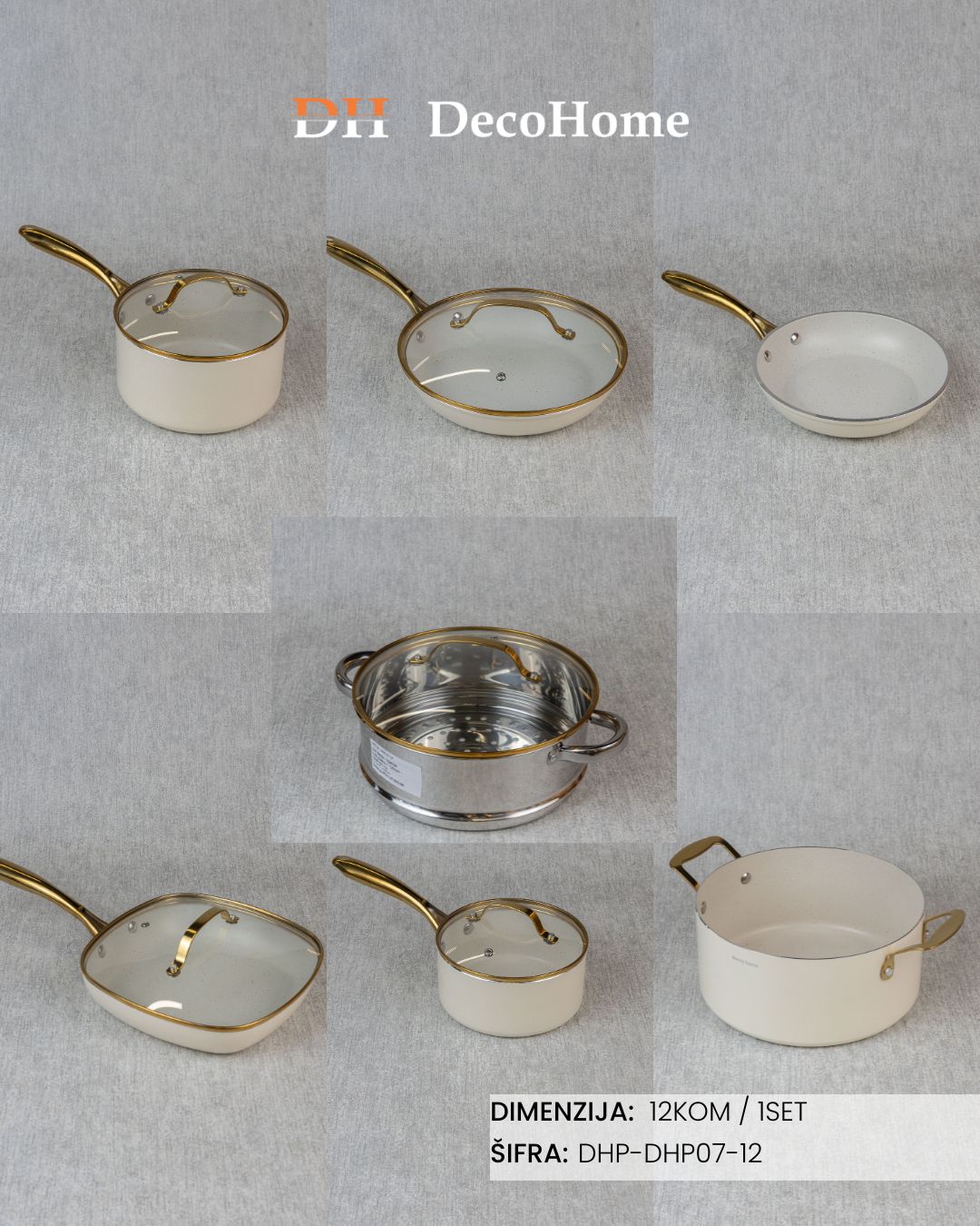Set šerpi i tiganja bež-zlatno / 12kom - DHP-07-12
