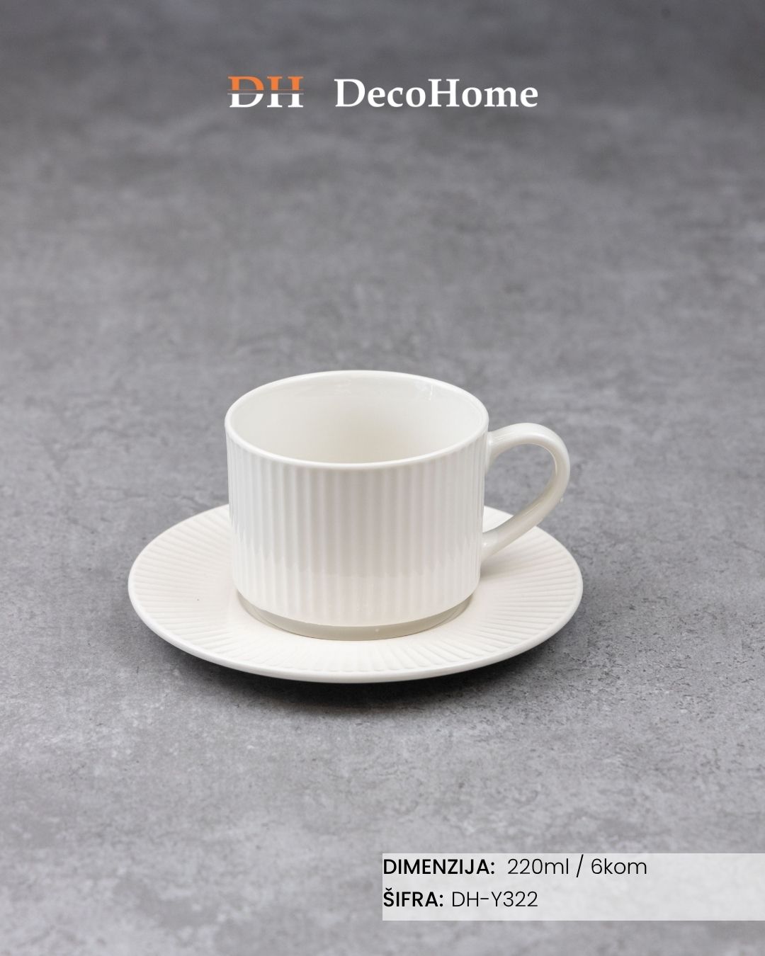 Elegantne šoljice za kafu izrađene od kvalitetnog materijala, dizajnirane da zadrže toplinu i pruže udobno uživanje u svakom gutljaju. Idealne za svakodnevnu upotrebu, kao i za posluživanje gostiju. Moderan dizajn uklapa se u svaki enterijer i čini ih savršenim izborom za vaš dom ili kancelariju.