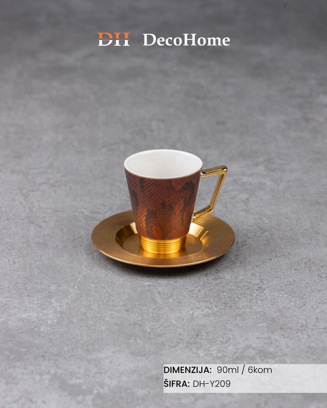 Porcelanske bordo print šolje + aluminijumske zlatne tacne 90ml / 6kom - DH-Y209