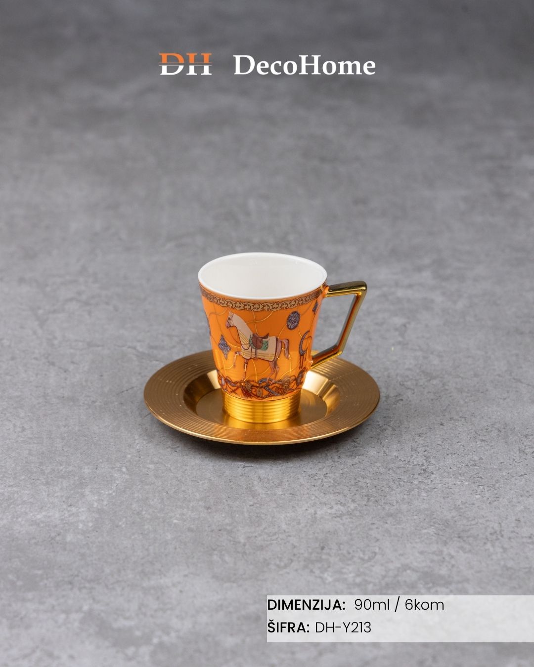 Porcelanske Herm nar. šolje + aluminijumske zlatne tacne 90ml / 6kom - DH-Y213