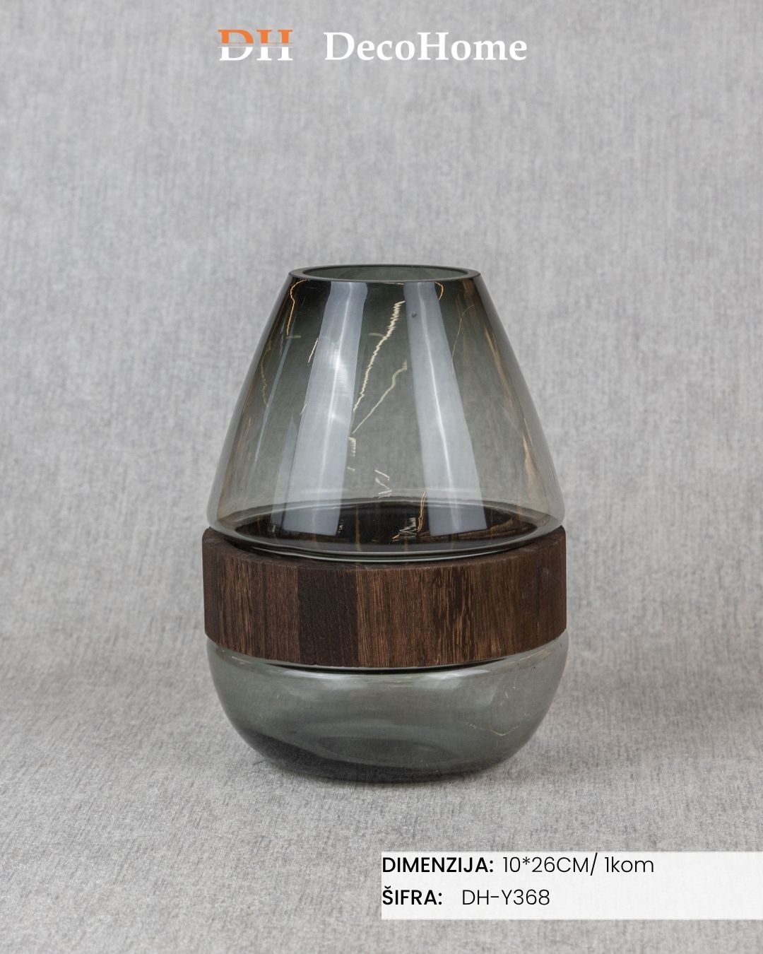Staklena vaza sa drvenim detaljima 10*26cm / 1kom - DH-Y368