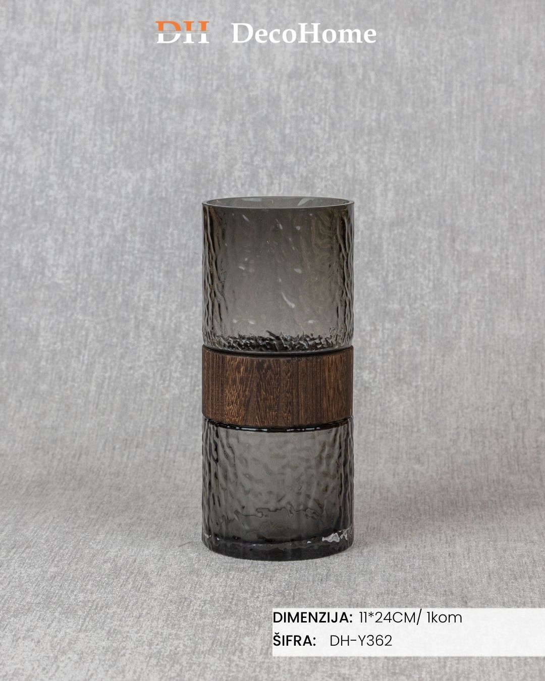 Staklena vaza sa drvenim detaljima 11*24cm / 1kom - DH-Y362