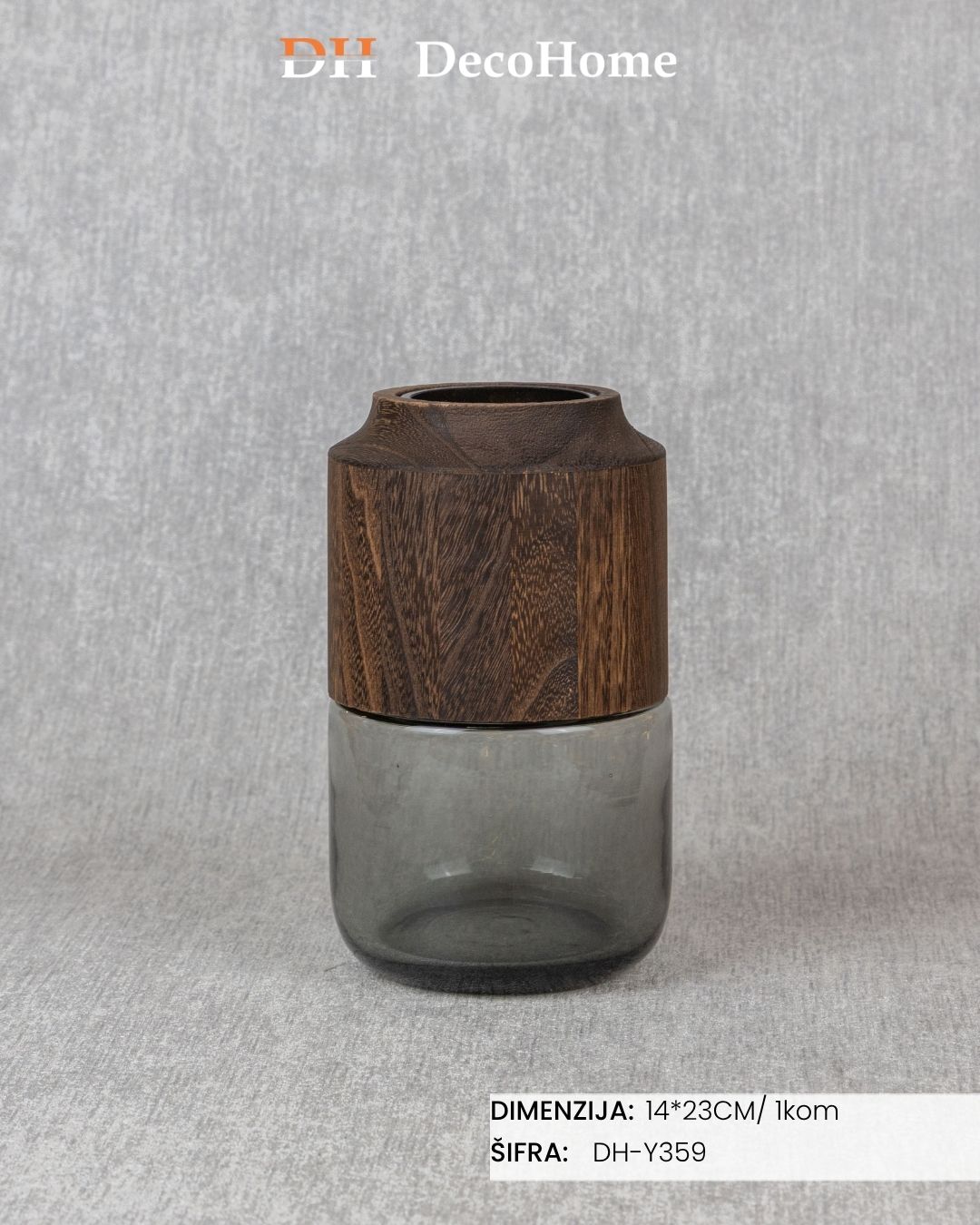 Staklena vaza sa drvenim detaljima 14*23cm / 1kom - DH-Y359