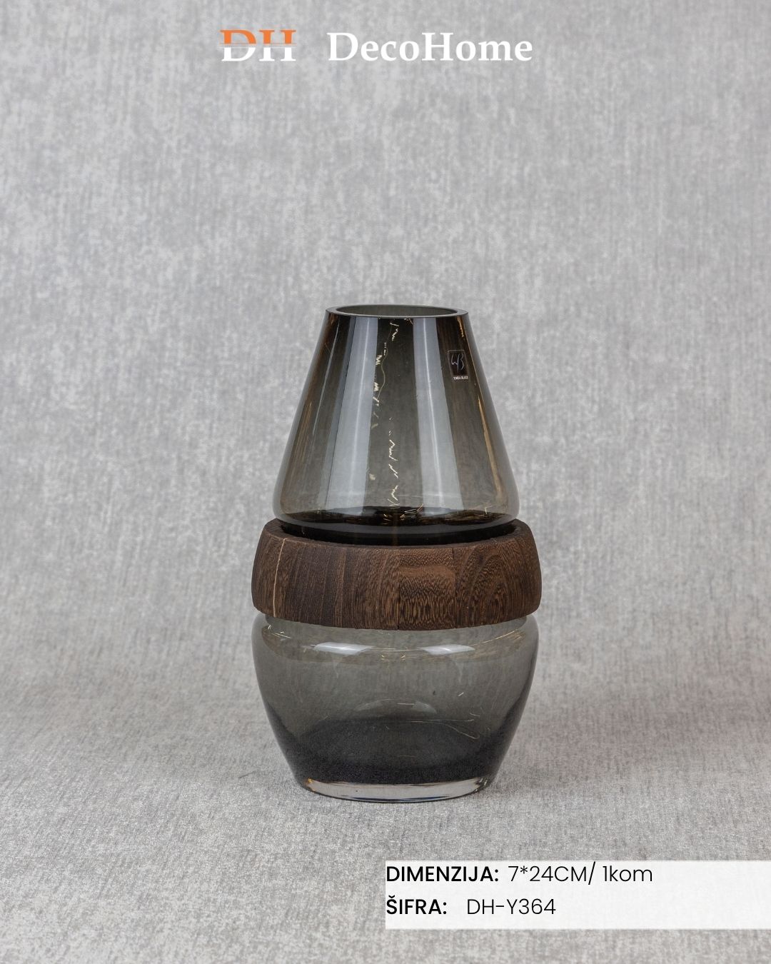 Staklena vaza sa drvenim detaljima 7*24cm / 1kom - DH-Y364