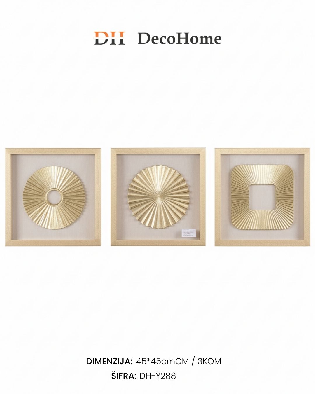 Drvene slike u staklenom ramu /zlatna/ 45*45cm / 3kom - DH-Y288